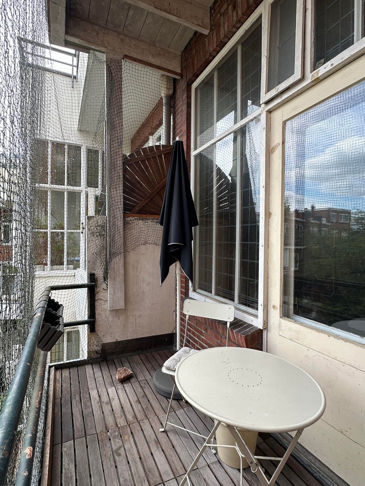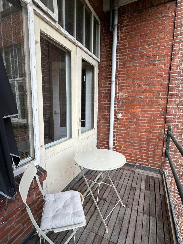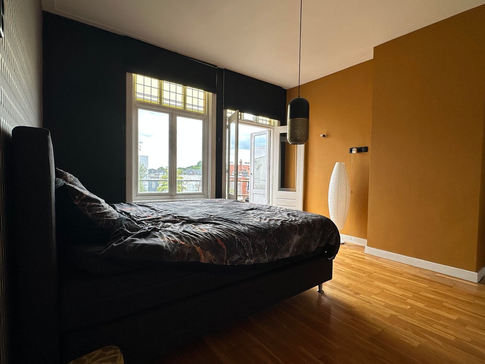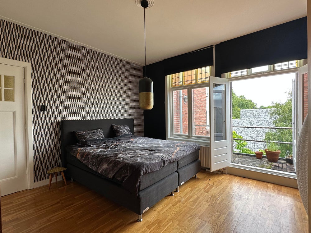 This apartment on Verlengde Hereweg in Groningen is available immediately. The apartment is spread over two floors and features two bedrooms, two balconies, a kitchen, and a separate office space.