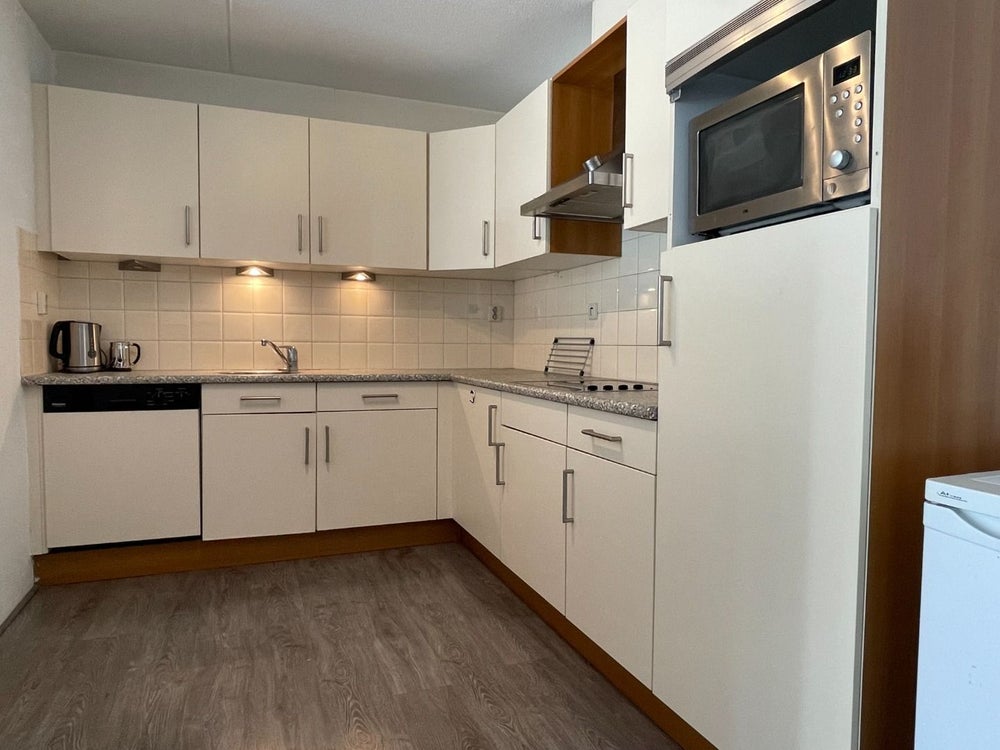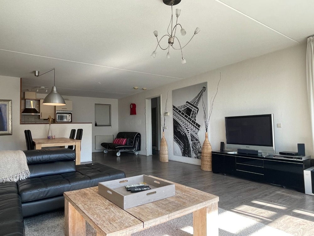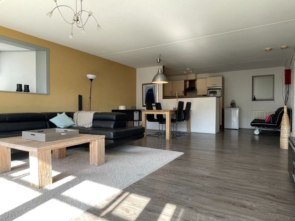 Entree, hal met toilet en berging. Lichte woonkamer met open keuken (welke is voorzien van inbouwapparatuur).